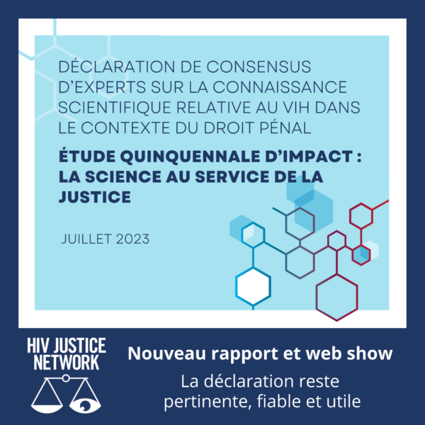 Un Rapport d'impact quinquennal : La science au service de la justice conclut que la Déclaration de consensus d'experts sur connaissance scientifique relative au VIH dans le contexte du droit pénal reste pertinente, fiable et extrêmement utile.