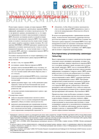 ПРООН/ЮНЭЙДС - КРАТКОЕ ЗАЯВЛЕНИЕ ПО ВОПРОСАМ ПОЛИТИКИ : Криминализация передачи ВИЧ, 2008