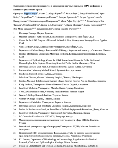 Барре-Синуси et al. 'Заявление об экспертном консенсусе в отношении научных данных о ВИЧ- инфекции в контексте уголовного права' 2018